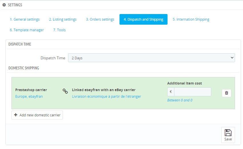 Solution: In the configuration page of the eBay module (domestic shipping and international shipping tabs), delete the carriers associated with the module and make the associations again.