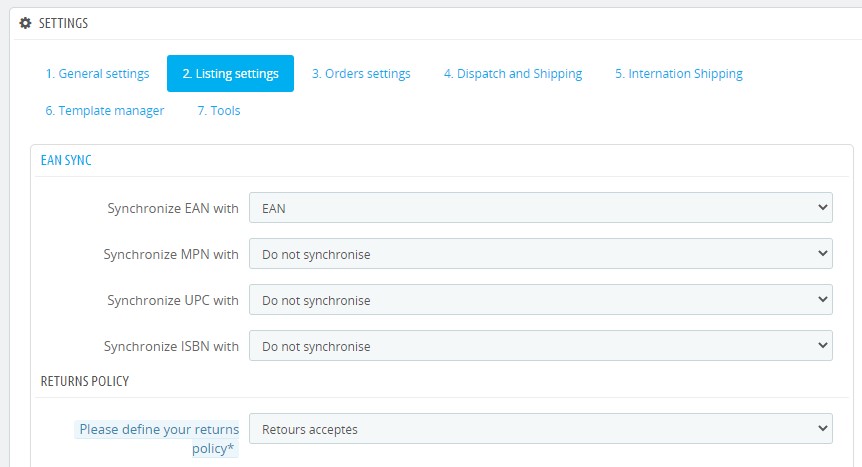 In the ad Listings tab, ensure that at least one reference code is synchronised (EAN, MPN, UPC, ISBN).