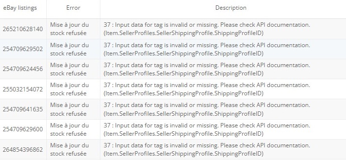 Error 37 may appear after the synchronisation of the products, in the tab "List of products with errors".