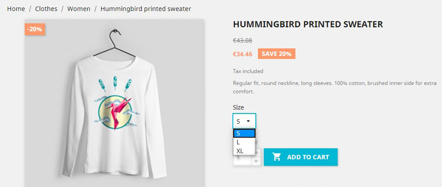 For example, if all XL sizes are disabled, the module will not display this size. Or, if all “black” colors are disabled, the module will not display that color.
