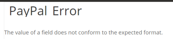 The error "the value of a field does not conform to the expected format" may be shown on the payment page during checkout.