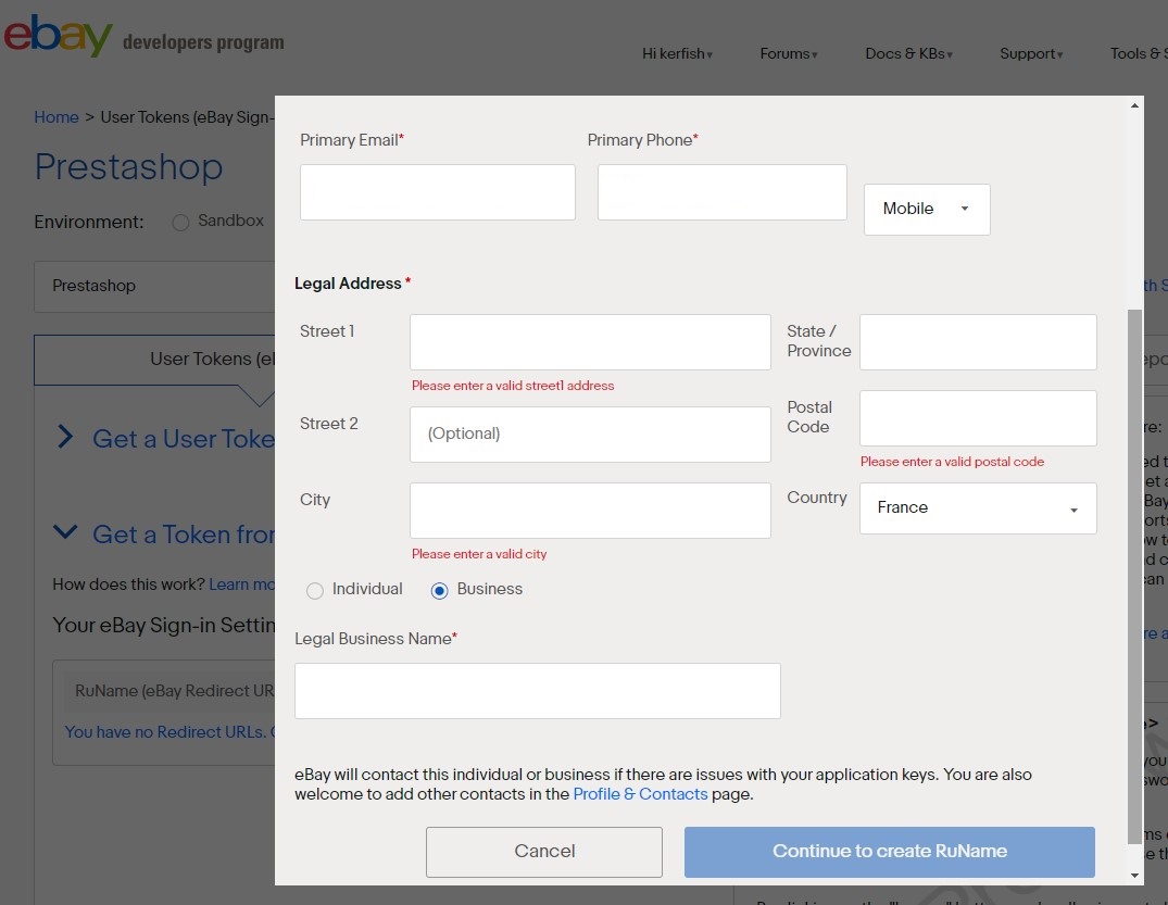 3) Leave this page open and, in another tab of your browser, log in to https://developer.ebay.com/