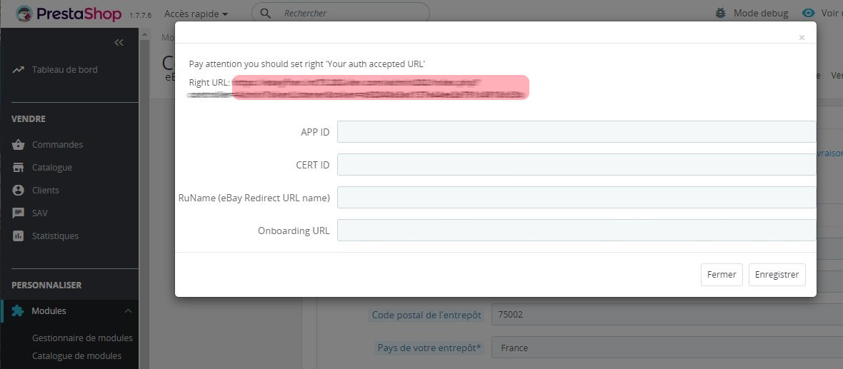 Return to the module configuration page and paste it in the APP ID field of the eBay module.