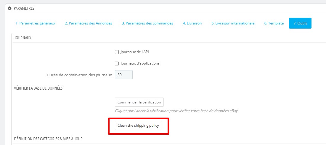 a) si plusieurs comptes eBay sont associés au même site ou la même boutique. Il peut arriver que la condition de livraison soit synchronisée dans le mauvais compte eBay.