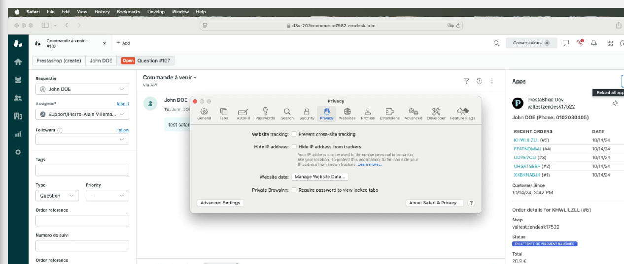 En conséquence, il est possible dans certains cas que les informations des commandes et des clients en soient pas reçues côté Safari.